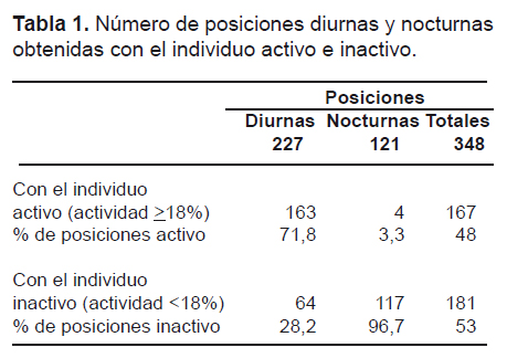 posiciones entre día-noche (t test, p=0.50) o entre