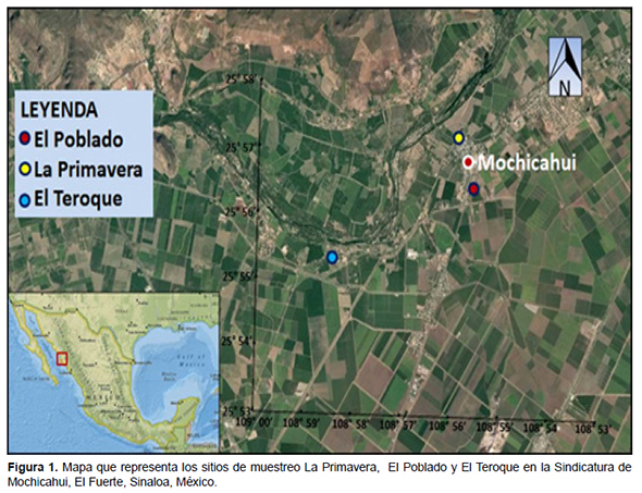 La agricultura de traspatio, o huertos familiares, es una práctica que tiene su origen en las culturas agroforestales, que se practica en distintos climas, tipos de suelo, espacios y extensiones, incluso a partir los dos metros cuadrados (Ospina 2002). Es una de las tecnologías agroforestales de más amplia distribución en el mundo (Nair 1993), que comúnmente involucra a toda la familia, pues la colaboración de cada miembro es indispensable y representa el éxito de esta actividad, porque desde los niños, quienes riegan las plantas, hasta las abuelas, que limpian y cuidan los sembradíos, están implicados en el cuidado general; son manejados principalmente por mujeres campesinas de tal manera que contribuyan a la economía familiar, a la generación de productos alimenticios para el autoconsumo o para la venta (Alison 1983, Budowski 1985, Niñez 1985). En México, los huertos familiares se distribuyen sobre todo el territorio. Los más estudiados han sido los huertos en la Península de Yucatán (Ruenes y Jiménez 1997, Jiménez et al. 1999), de los cuales existen reportes de la alta diversidad biológica de los huertos. Los frutos obtenidos de esta práctica representan un papel destacado en los agroecosistemas campesinos, porque además de ser elementos ornamentales que proveen sombra a las casas, como alimentos aportan propiedades antioxidantes, riqueza en vitaminas, minerales y fibras, por lo que son parte de una dieta adecuada para la salud humana y debe ser imprescindible incrementar el abasto de estos productos por razones nutricionales, económicas, productivas y ambientales (Rodríguez et al. 2007). En la Declaración de Roma sobre la Seguridad Alimentaria Mundial, el Documento de la Cumbre Mundial sobre la Alimentación (2004), se menciona que los problemas del hambre y la inseguridad alimentaría tienen dimensiones mundiales y es probable que persistan e incluso se agraven dramáticamente en algunas regiones, si no se adopta con urgencia una acción decidida y concertada, por el incremento de la población mundial previsto y la tensión a que están sometidos los recursos naturales, no solo esto, sino también de la compleja situación económica y social que padecen las diversas generaciones y sociedades. En ese sentido, actualmente se hacen necesarias diversas estrategias para utilizar los recursos naturales que tenemos a nuestro alcance y los huertos son uno de ellos, los cuales pueden generar cambios positivos en el apoyo a las deficiencias alimentarias por las que atraviesan actualmente diversos países, regiones y comunidades vulnerables. En la actualidad en algunas regiones de Europa, se está regresando a la alimentación de traspatio, lo cual se practica por razones ecológicas, porque representa ayuda a la economía familiar y porque además mejora la inocuidad alimentaria, porque los productos están libres de agroquímicos; esta práctica está creciendo poco a poco en todo el mundo, ante la necesidad de consumir alimentos orgánicos (Sánchez 2010). El objetivo de este trabajo es evaluar la abundancia y diversidad biológica de los huertos de frutales de traspatios en las comunidades La Primavera, El Poblado y El Teroque de la Sindicatura de Mochicahui en El Fuerte, Sinaloa, México. Metodología