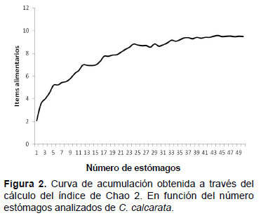 By analyzing the stomach contents of 64 specimens of C. calcarata diet