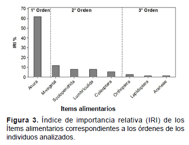 las presas se clasificaron a nivel de orden y especies. Resultados: En
