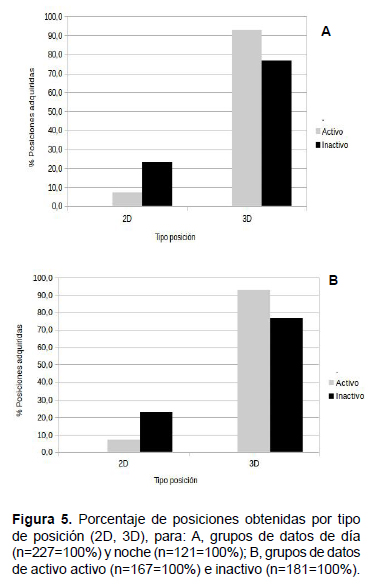 posiciones entre día-noche (t test, p=0.50) o entre