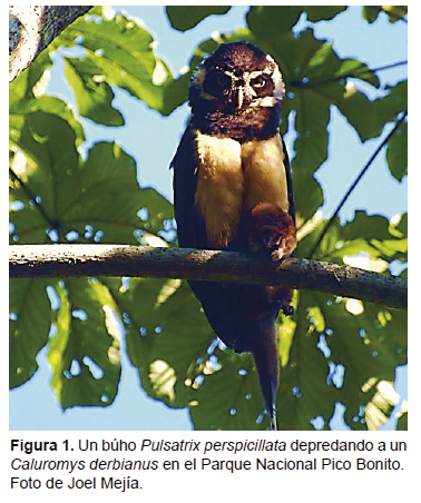 Palabras clave: Central American woolly oposum, Depredación, Pulsatrix perspicillata, Records departamentales, Reproducción, Zorra lanosa centroamericana.