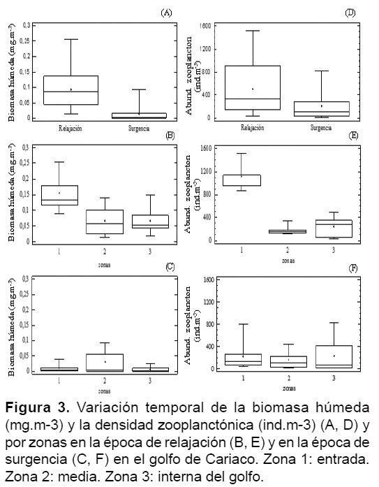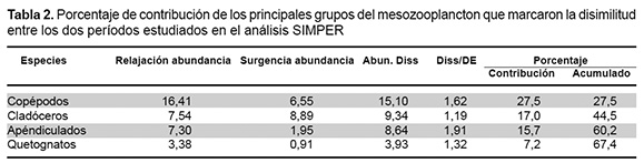 Palabras clave: Mesozooplancton, Surgencia, Relajación, Variación temporal.
