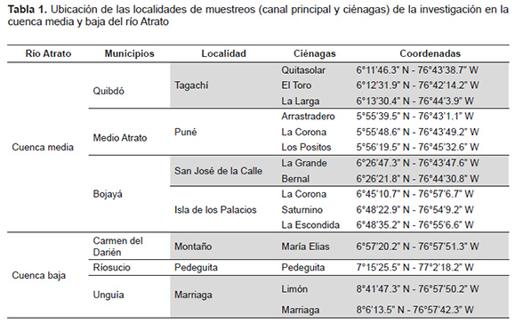 Esta investigación se llevó a cabo gracias al convenio suscrito entre la Universidad Tecnológica del Chocó (UTCH) y la Corporación Autónoma para el Desarrollo Sostenible del Chocó (CODECHOCÓ) dentro del marco del proyecto “Diseño e Implementación de Protocolos de Producción de Especies Ícticas Nativas en la Cuenca del río Atrato” financiado por el Sistema General de Regalía a través de Colciencias. También agradecemos el apoyo a las comunidades objeto de estudio y a los integrantes del grupo de investigación de Zoología línea Ictiología de la UTCH. Literatura citada