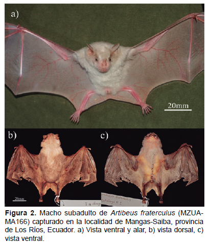 Primer reporte de leucismo para Artibeus fraterculus (Chiroptera: Phyllostomidae) en Ecuador