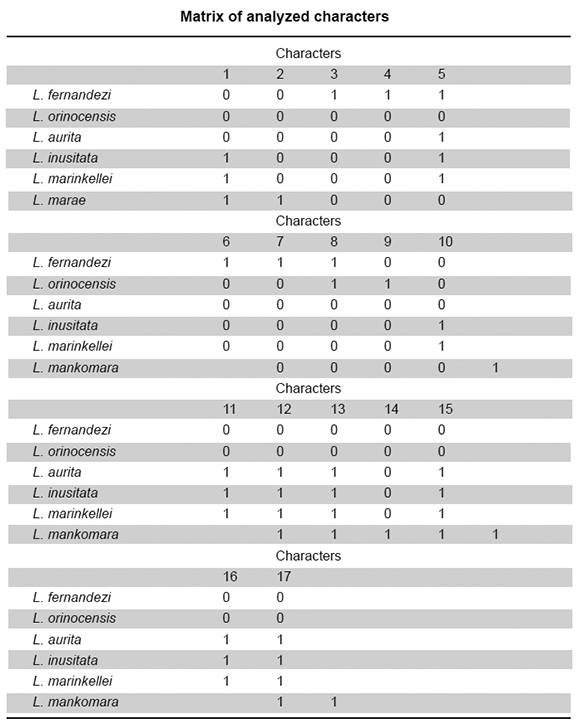 We would like to thank H Garner, L Bradley JP Carrera and personnel of the Natural Science Research Laboratory (NSRL) and the Texas Tech Museum; BD Patterson, L Heaney, W Stanley, R Baniasek, and N Upham and the Field Museum of Natural History short term visitors program; DE Wilson, AL Gardner, K Helgen, L Gordon for their help at the collections of the United States National Museum of the Smithsonian Institution; G Amat, J Aguirre, H López, N Pérez-Amaya and J Muñoz-Garay, for their help at the mammal collection of the Instituto de Ciencias Naturales of the Universidad Nacional de Colombia. Collection of the type specimens of L. mankomara in the field was conducted within the Colombian Amazon Biogeography and Conservation (CABCP) project directed by T Walshburger and sponsored by the Mac Arthur Foundation and Fundación Puerto Rastrojo. The specimens described here would still be unknown because very few other scientists have visited such a remote area. We thank our colleagues in the field, M Romero, T Walsburger and A Hurtado who participated in the CABCP. Finally, we would like to acknowledge C Castaño for the images of pictograms from Chirbiquete, as well as the biological Chiribiquete expedition team (N Pérez-Amaya, A Suárez, MF González, G Andrade, J Betancur, D Cárdenas, JI Mojica, F Mosquera-Guerra, LG Naranjo, JD Lynch, G Styles, F. Trujillo, and G Vargas) for the invaluable input on the evolution of the biota of area of the PNN Chiribiquete. We would like to thank L Trujillo, for his search on the word mother in Karijona. Data collection in Colombia was possible thank to the Posdoctoral program of the Universidad Nacional de Colombia and the Instituto de Ciencias Naturales.