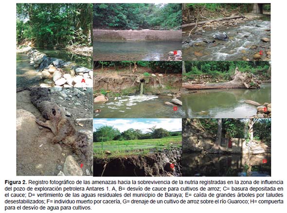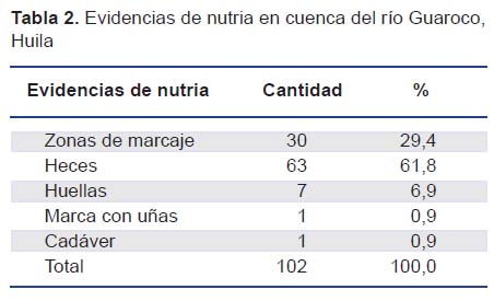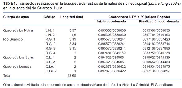 La nutria se distribuye en el río Guaroco y la quebrada La Nutria, presentando una abundancia relativa media y una preferencia por el marcaje en sustratos conspicuos sobresaliendo las rocas. A su vez, enfrenta en la zona amenazas directas a su supervivencia como la cacería, la extracción de agua del cauce principal para inundar campos de cultivos, y lagos artificiales para pesca. Estos afluentes son sitios claves para la conservación de la especie en bajas lluvias pues son el refugio de las nutrias del enclave seco de La Tatacoa en dicha temporada. Agradecimientos