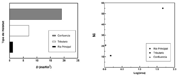 Tamaño de la población: El tamaño de la población (Ni) para los delfines de río en cada hábitat i, fue establecido: Ni=Ai Di