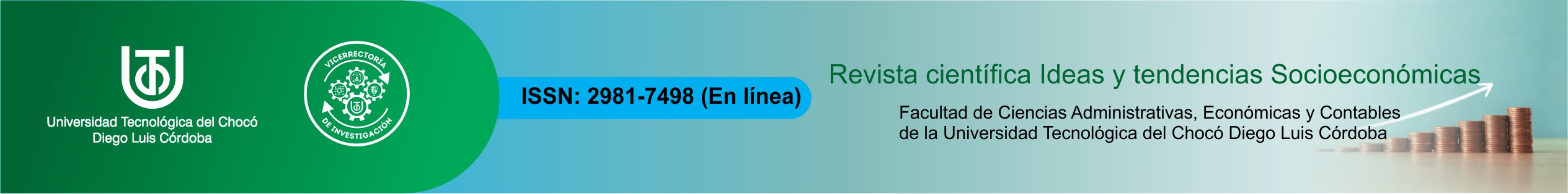 LA REVISTA CIENTÍFICA IDEAS Y TENDENCIAS SOCIOECONÓMICAS (ISSN: 2981-7498 En Línea), nace en Febreo 2024, adscrita a la Universidad Tecnológica del Chocó Diego Luis Córdoba, Facultad de Ciencias Administrativas, económicas y contables, arbitrada e indizada, bajo la modalidad electrónica, siendo de publicación semestral, especializada en las áreas de: Gerencia, negocios, contabilidad, relaciones económicas internacionales, turismo, finanzas, gestión pública, planificación, marketing, tributaria, recursos humanos, innovación y emprendimiento, entre otras disciplinas afines de igual interés. Representa un medio de difusión y divulgación de la producción intelectual generada por investigadores de varios países del mundo en idioma español e inglés. Gestionando su actividad a través de la Vicerrectoría de investigaciones.